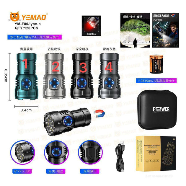 كشاف يدوي قوي من YEMAO إضاءة LED فائقة السطوع قابلة لإعادة الشحن مع بوكس لحماية وحفظ الكشاف