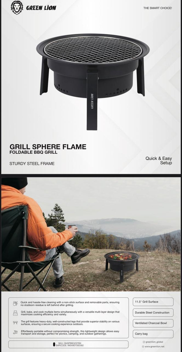 شواية فحم قابلة للطي بحجم مميز مع ارجل ثابته من Green Lion