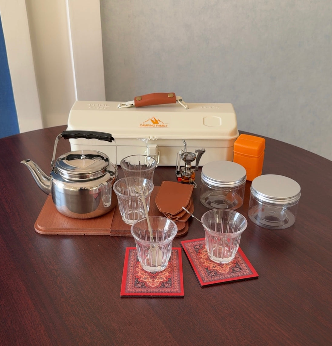 استعد لتجربة شاي فاخرة في البر أو الرحلات مع طقم عزبة الشاي المتكامل. تصميم مدمج ومتين يحتوي على كل ما تحتاجه لإعداد وتقديم الشاي في أي مكان – بلمسة أنيقة وعملية.