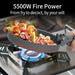 دعامة مسننة سميكة مضادة للانزلاق: تزيد الحوامل المسننة من الاحتكاك مع أواني الطهي من أجل مقاومة أفضل للانزلاق، ويمكن وضعها بثبات على أي تضاريس، لتوفير دعم ثابت للأواني التي يبلغ قطرها من 80 إلى 260 مم. يضيف المركز المنخفض لثقل الموقد الثبات في الاستخدام.