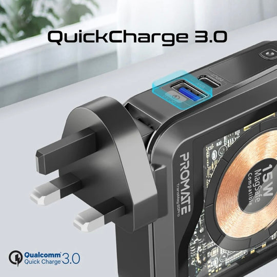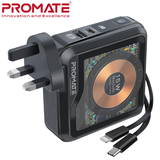 : البائع Promate باور بنك لاسلكي بخاصية الماج سيف بسعة 10000 مل أمبير يدعم شحن ساعة الابل من Promate بنك الطاقة اللاسلكي لشحن سوبر ماجنتيك متوافق مع Magsafe لساعة آبل سعة بطارية 10000mAh حامل منبثق توصيل الطاقة بقوة 20 واط مغناطيس قوي للتثبيت توافق عالمي شحن لاسلكي Magsafe بقوة 15 واط شحن لاسلكي سريع لسماعات...Regular price AED 195.00