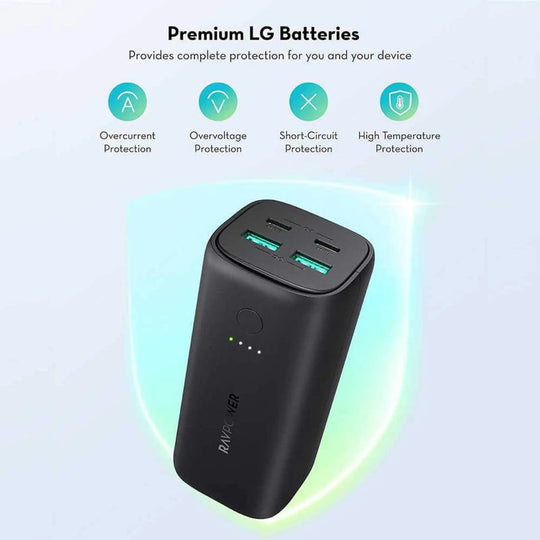 : البائع RavPower شاحن متنقل بقوة 50 واط وسعة بطارية 20000 مللي أمبير من RAVPOWER **الميزات:**1. **سعة كبيرة:** - يأتي ببطارية بسعة 20000mAh، مما يتيح شحن الهواتف الذكية والأجهزة اللوحية عدة مرات.2. **تقنية GaN الحديثة:** - يستخدم تكنولوجيا GaN لتحسين كفاءة الشحن.3. **قوة 50 واط:** - يوفر قوة شحن تصل إلى...Regular price AED 245.00