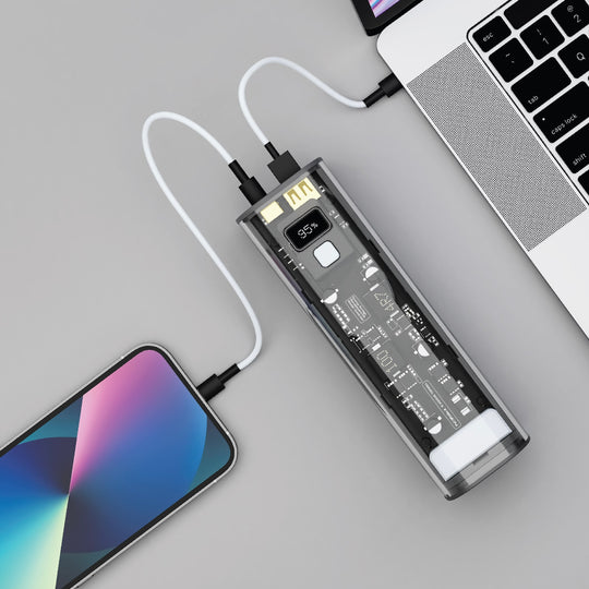 : البائع Powerology باور بنك عملاق بسعة 24000 مل أمبير سلسلة Crystalline من Powerology : فيديو توضيحي https://www.instagram.com/reel/Cv1xlzWgIqe/?igshid=MzRlODBiNWFlZA== بنك الطاقة Powerology 24000mAh من سلسلة Crystalline يوفر لك القوة والكفاءة التي تحتاجها في جهاز شحن محمول. يتميز بتصميمه العصري والأنيق الذي يتناسب مع جميع الأذواق. تأتي هذه الوحدة بقوة PD100W، مما...Regular price AED 330.00