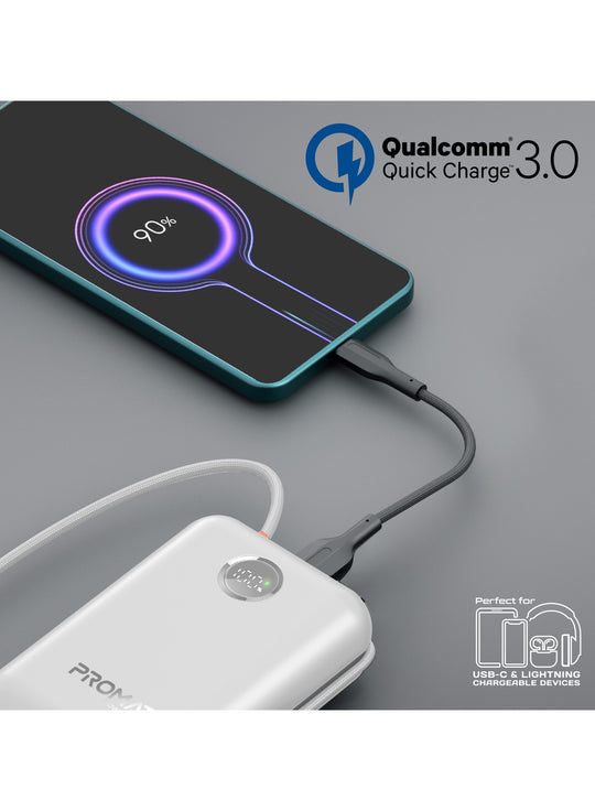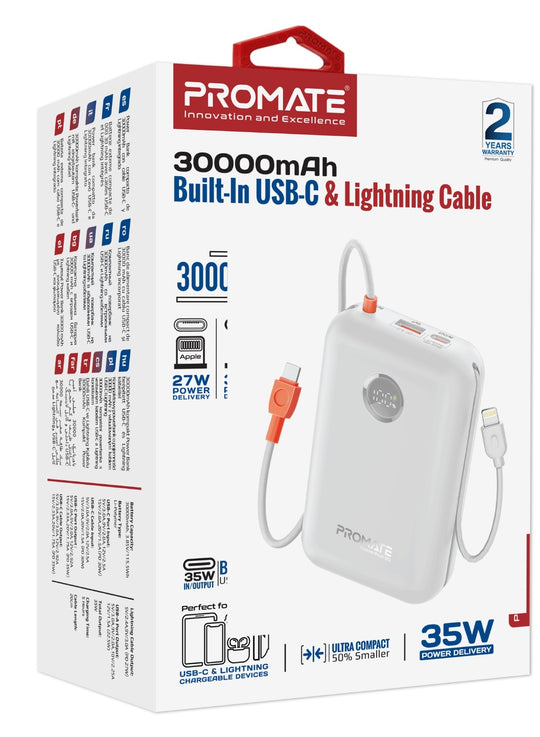 خصم -20%                  : البائع Promate باور بنك بسعة 30000 مل أمبير وقوة 35 واط مع كابل Type-C و Lighting مدمج من Promate No reviewsاشحن كل أجهزتك بأداء فائق وسرعة لا تُضاهى! المميزات الرئيسية: 🔋 سعة ضخمة 30,000mAh: مثالي للسفر أو الاستخدام اليومي، اشحن أجهزتك مرات متعددة دون الحاجة لإعادة شحن البنك. ⚡ شحن فائق السرعة لأربع...Sale price AED 220.00Regular price AED 275.00