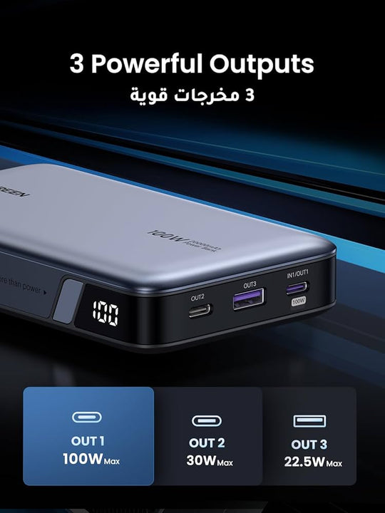 باور بنك محمول بسرعة فائقة 100 واط وسعة 20000 مل أمبير من UGREEN