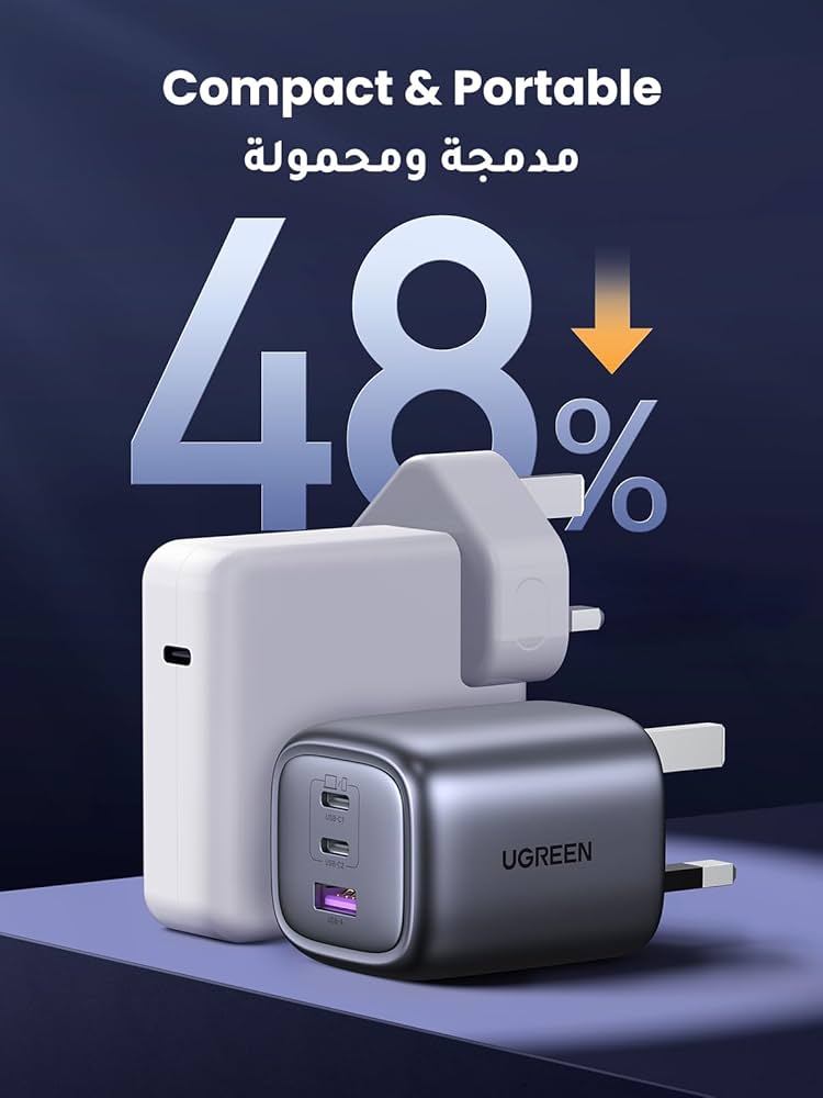 اجمع بين الكفاءة، القوة، والحجم المثالي في شاحن واحد مع UGREEN Nexode 65W. بفضل تقنية GaN المتقدمة، يقدم هذا الشاحن أداءً فائقًا في تصميم مدمج وقابل للطي، مثالي للمحترفين والمسافرين.