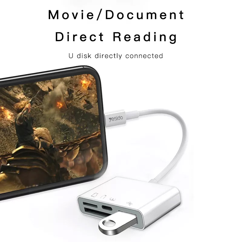 - يتيح لك محول YESIDO GS12 Lightning إلى USB الاتصال بأجهزة USB مختلفة مع جهاز iPhone أو iPad الخاص بك.