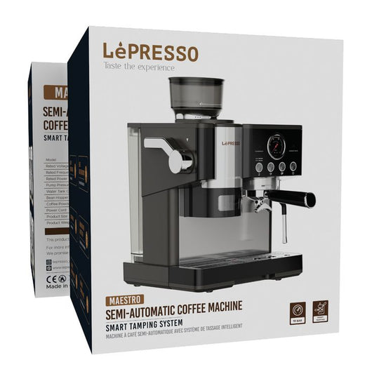 ماكينة قهوة مايسترو نصف أوتوماتيكية لصنع اسبريسو مع مطحنة مدمجة من Lepresso