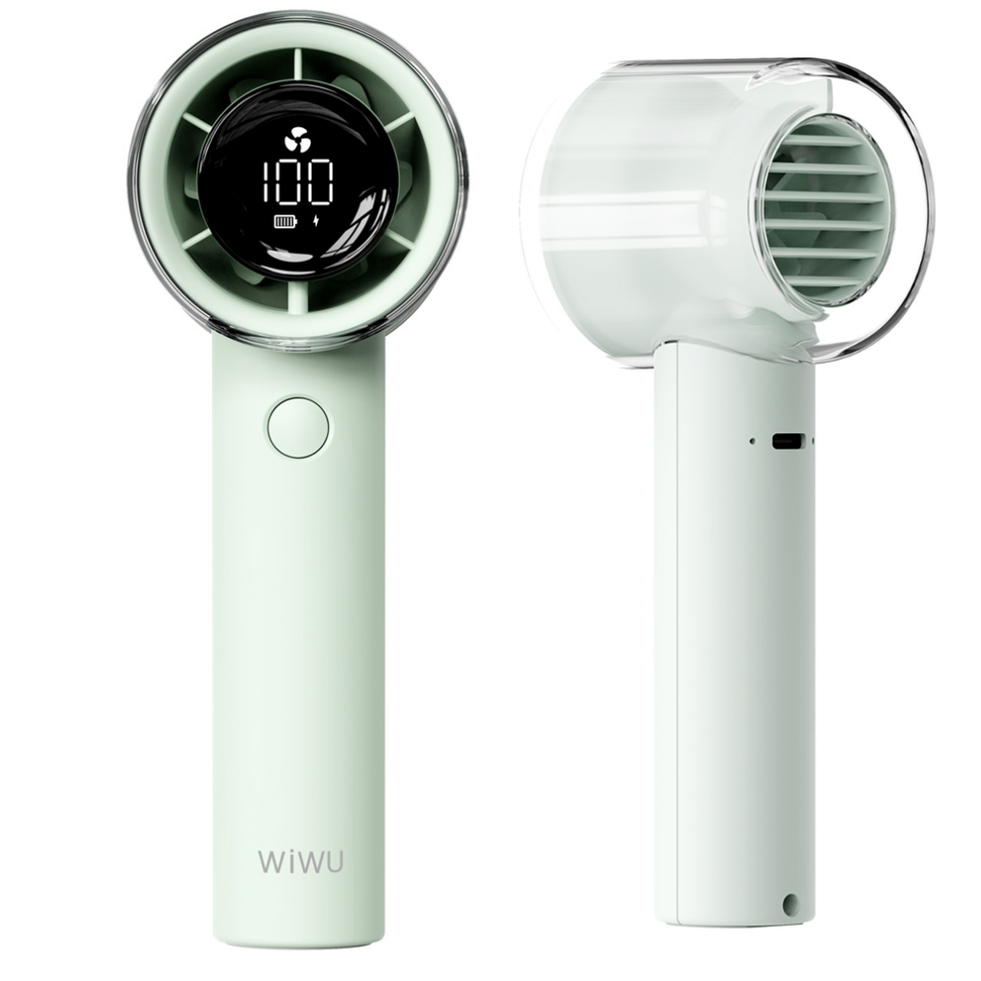 - مروحة يد محمولة قابلة للشحن WIWU Wi-FS010 بتصميم صغير جدًا وخفيف الوزن، مما يسهل وضعها في الحقيبة وأخذها في أي وقت. على الرغم من صغر حجمها، إلا أنها قوية وتقدم عدة أوضاع للرياح، مما يجعلها مناسبة لأيام الصيف الحارة.