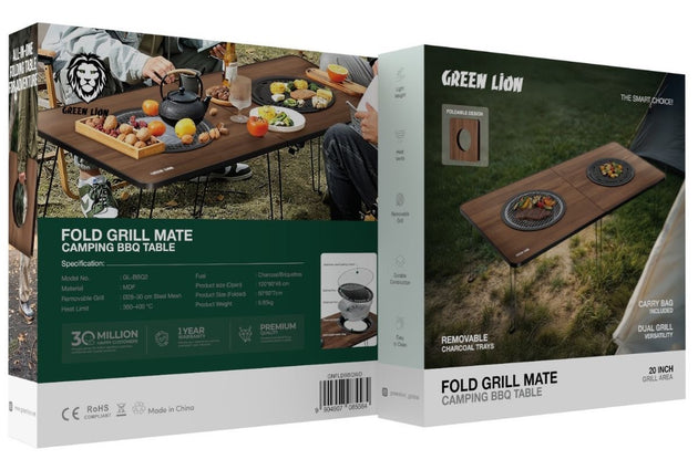 طاولة شواء قابلة للطي مع شواية فحم للمخيم من GREEN LION