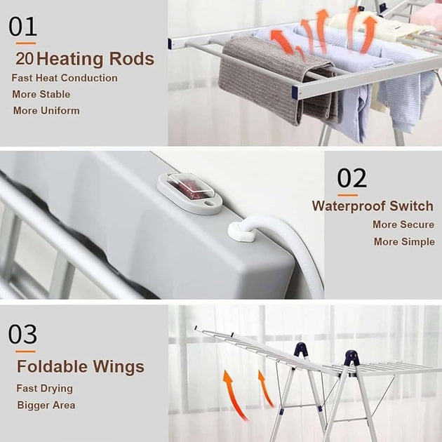 منشر ملابس كهربائي قابل للطي مجفف ملابس داخلي محمول مزوّد بقضبان تسخين وهواء ساخن آمن للملابس