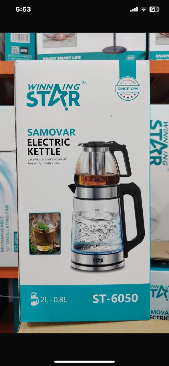 ساموفار Winning Star الكهربائي هو الحل العملي والأنيق لتحضير الماء الساخن والشاي بكل سهولة. تم تصميمه بنظام ذكي 2 في 1 يجمع بين غلاية ماء كبيرة وإبريق شاي مخصص على قاعدة واحدة، مما يجعله مثاليًا للاستخدام اليومي في المنزل أو المكتب.