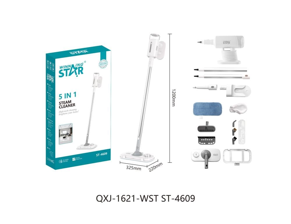 مكنسة بخار Winning Star، مكنسة بخار 5 في 1، منظف بخاري عمودي، مكنسة تعقيم بالبخار، مكنسة 1500 واط، مكنسة بخار للأرضيات والسجاد، مكنسة بخار متعددة الملحقات، Winning Star ST-4609.