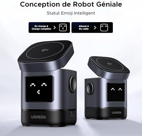 ✅ تصميم لطيف ومدمج: شكل روبوت صغير بواجهة متحركة تعكس حالة الشحن