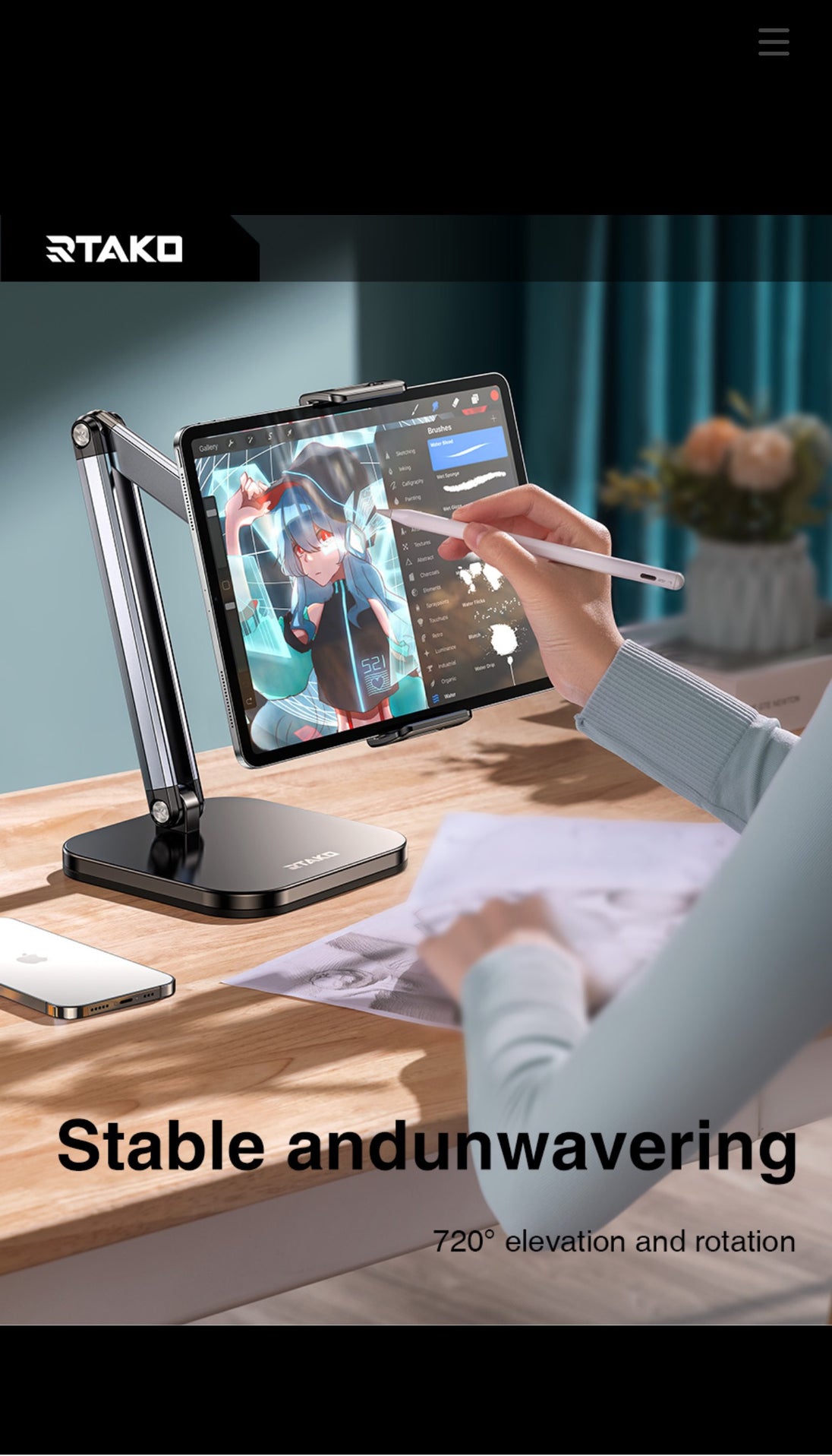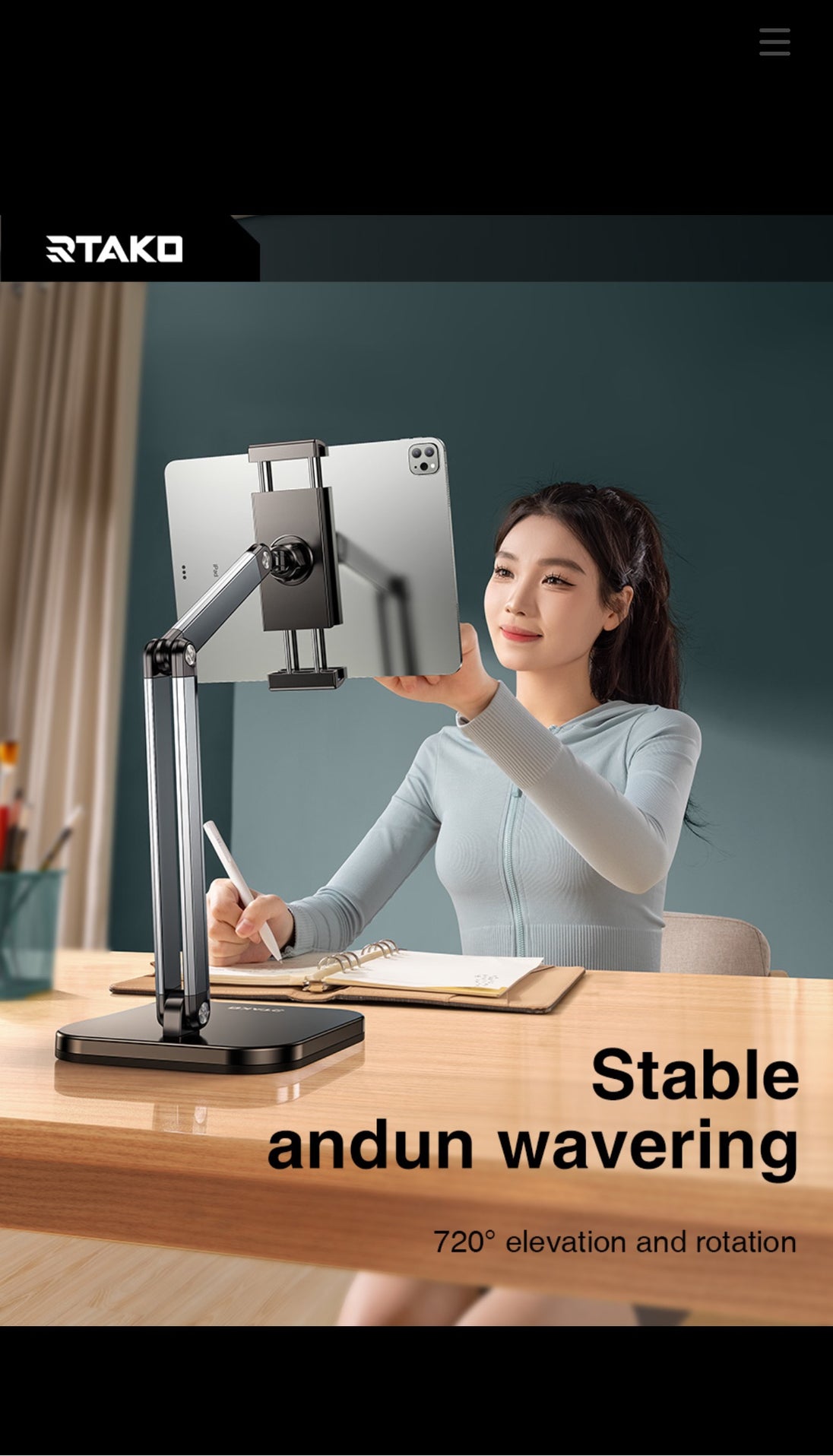 حامل RTAKO 911JD الذكي يجمع بين القوة والمرونة، ويأتي بتصميم معدني أنيق وقاعدة ثابتة ليمنحك تجربة استخدام مريحة في المكتب أو المنزل. مثالي للاجتماعات، المشاهدة، أو الدراسة.