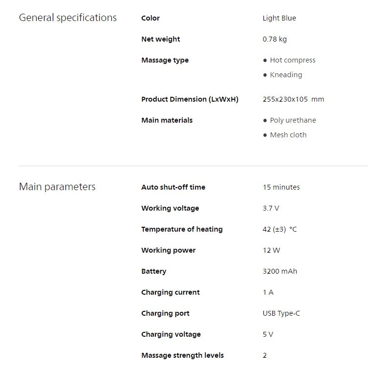 • ضغط ساخن عند 42 درجة مئوية، يعزز الدورة الدموية ويخفف الإرهاق: يمكن لضغط ساخن ثابت عند 42 درجة مئوية تعزيز الدورة الدموية بشكل فعال، وتخفيف عضلات الصلابة، والسماح للدفء بالوصول إلى النسيج، لتعزيز تأثير التدليك العلاجي بشكل أكبر.
