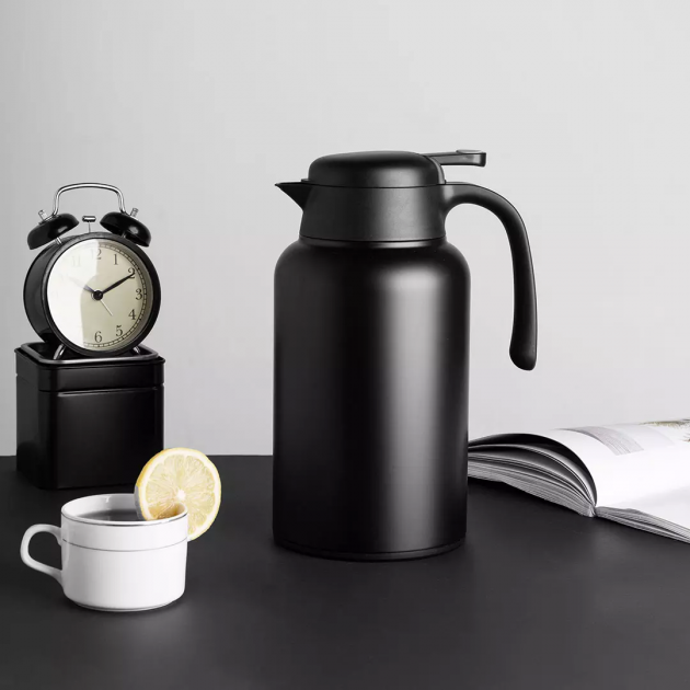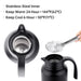 الاحتفاظ بالدفء والبرودة: الجزء الداخلي من الفولاذ المقاوم للصدأ في إبريق الماء الحراري المعزول بالفراغ يمكنه الاحتفاظ بالدفء لمدة 24 ساعة تقريبًا عند 143 درجة فهرنهايت (62 درجة مئوية). ويمكن الاحتفاظ بالبرودة لمدة 24 ساعة تقريبًا عند 48 درجة فهرنهايت (9 درجات مئوية).