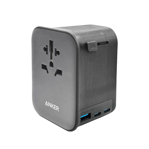 شحن حتى 4 أجهزة في وقت واحد – يتميز بمقبس تيار متردد (AC) واحد و3 منافذ USB (2× USB-C + 1× USB-A) لتوفير شحن سريع بقوة 65W عند استخدام منفذ USB-C منفردًا، و15W كحد أقصى للمنافذ الأخرى.