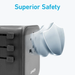 أمان عالي المستوى – حماية تأريض مدمجة وحماية من زيادة التيار، مع فصل تلقائي للطاقة في حالة التحميل الزائد للحفاظ على سلامة أجهزتك.