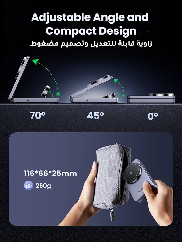 إذا كنت بحاجة إلى شاحن لاسلكي سريع ومتنقل يدعم شحن الآيفون، AirPods، وApple Watch في نفس الوقت، فإن UGREEN MagFlow 2 هو الخيار المثالي!