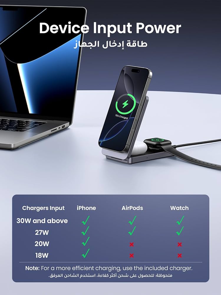 • شحن AirPods بقوة 5W وساعة Apple Watch بقوة 5W لشحن متزامن وسريع.