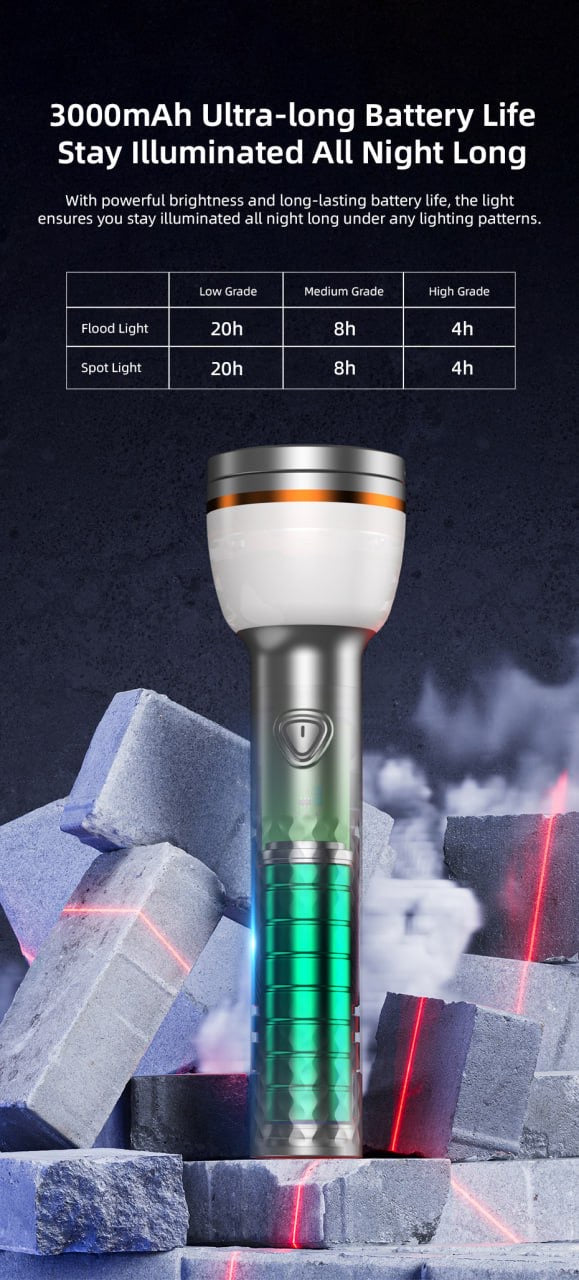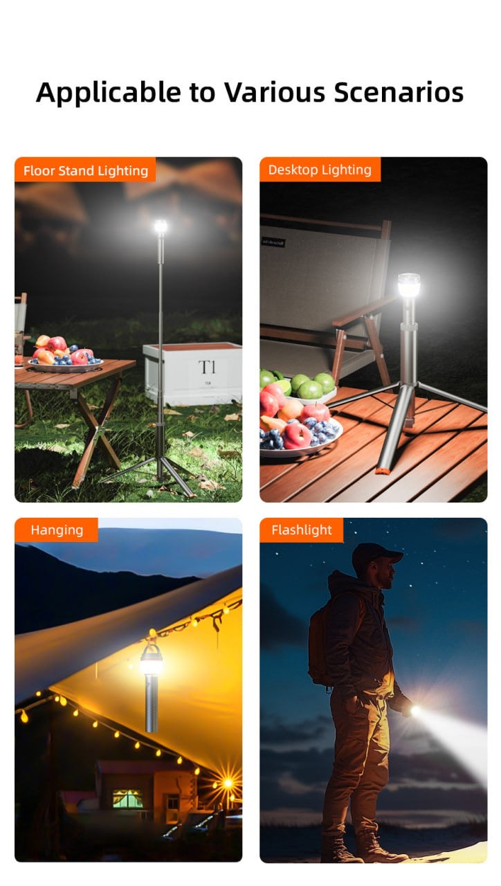 تصميم تصغير متعدد الاستخدامات: يعمل مصباح التخييم Tevole Telescoping على رفع مستوى تجربتك في الهواء الطلق من خلال ميزة الارتفاع القابلة للتعديل، والتي تتراوح من 47 سم إلى 192 سم. تم تصميم مصباح التخييم التلسكوبي والقابل للطي هذا لسهولة الحمل وتعدد الاستخدامات، ويزن 588 جرامًا فقط، مما يجعله عنصرًا أساسيًا لكل قائمة معدات التخييم. ساطع ومتين ومقاوم للطقس: قم بإضاءة موقع المخيم الخاص بك بهذا الضوء الخارجي عالي الأداء، والذي يوفر ما يصل إلى 800 لومن من السطوع. تم تصميمه ليدوم طويلاً بجسم معدني بالكامل ويتمتع بتصنيف IP65 المقاوم للماء، وهو الضوء الخارجي المثالي الذي يعمل بالبطارية للتخييم، مما يضمن الموثوقية في أي ظروف جوية. ميزات ذكية للراحة والأمان: مزود بجهاز تحكم عن بعد RF ذكي، وقاعدة مغناطيسية لسهولة التركيب، وتصميم خطاف للتعليق داخل مصابيح الخيمة أو على الفروع، يوفر مصباح التخييم هذا أوضاع إضاءة متعددة، بما في ذلك خيارات الأضواء والإضاءة الكاشفة، كما بالإضافة إلى وضع SOS لحالات الطوارئ، مما يجعله مصباح يدوي للتخييم لا غنى عنه.