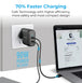 محول شحن GaNFast™ بقوة 90 وات بتقنية Power Delivery • منفذان USB-C • شحن سريع بتقنية Power Delivery لأجهزة iPhone 8 فأعلى • شحن سريع لجميع الهواتف الذكية التي تعمل بنظام Android