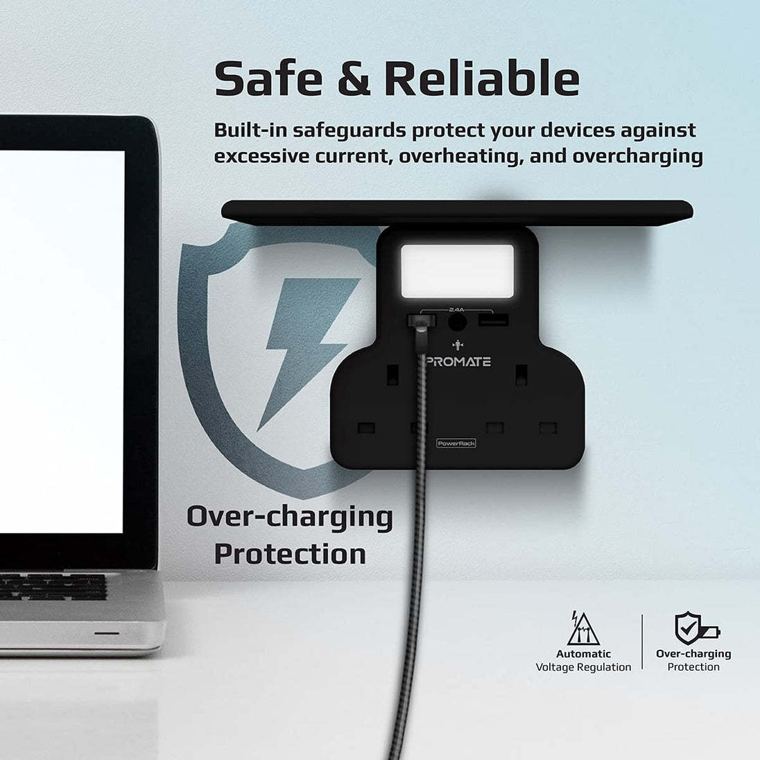 • Safeguard your devices: PowerHinge secures your electronic devices from overload, short circuits, power spikes or fluctuations.