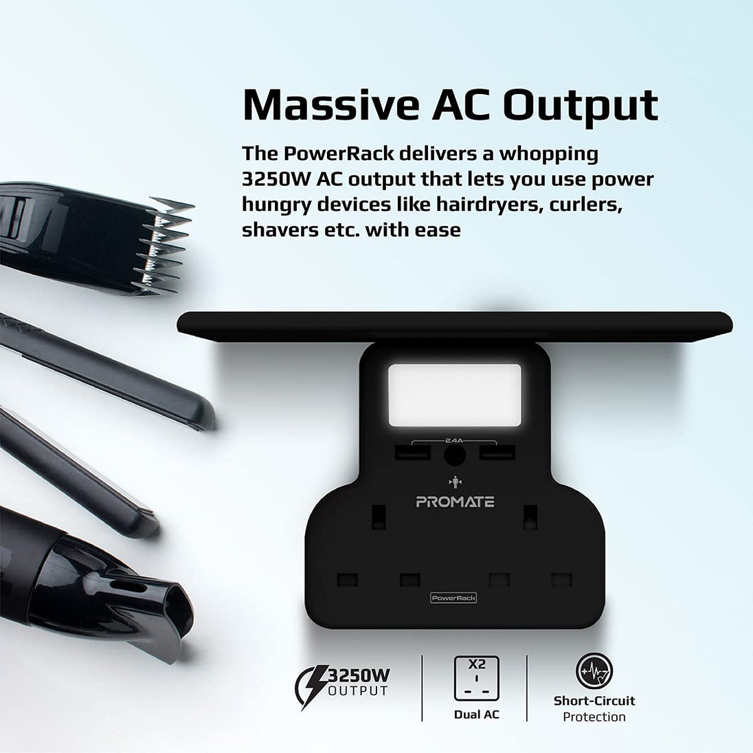 3250W Wall Mounted Power Strip • 3 AC Sockets • 20W USB-C Power Delivery • Dual Quick Charge 3.0 Ports • Space-Efficient Design