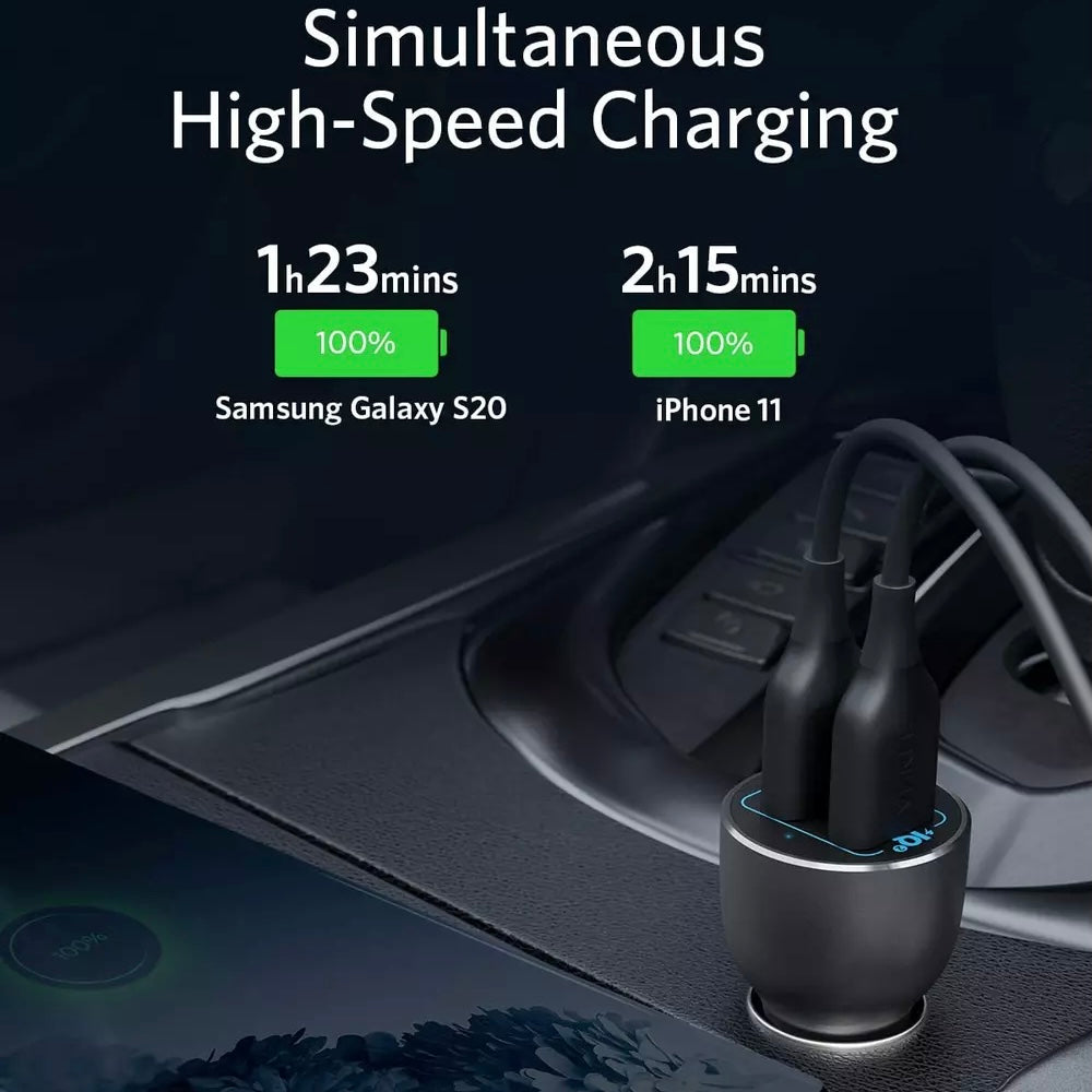شاحن سيارة بمنفذ ثلاثي – 100 واط PD، USB-C وUSB-A سريع من Anker