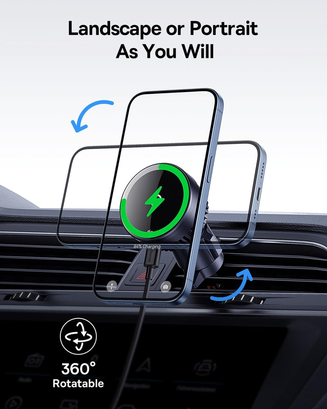 تثبيت فوري وآمن لهاتفك بفضل نظام المغناطيس القوي، مناسب للهواتف المتوافقة مع MagSafe أو أغطية مغناطيسية.