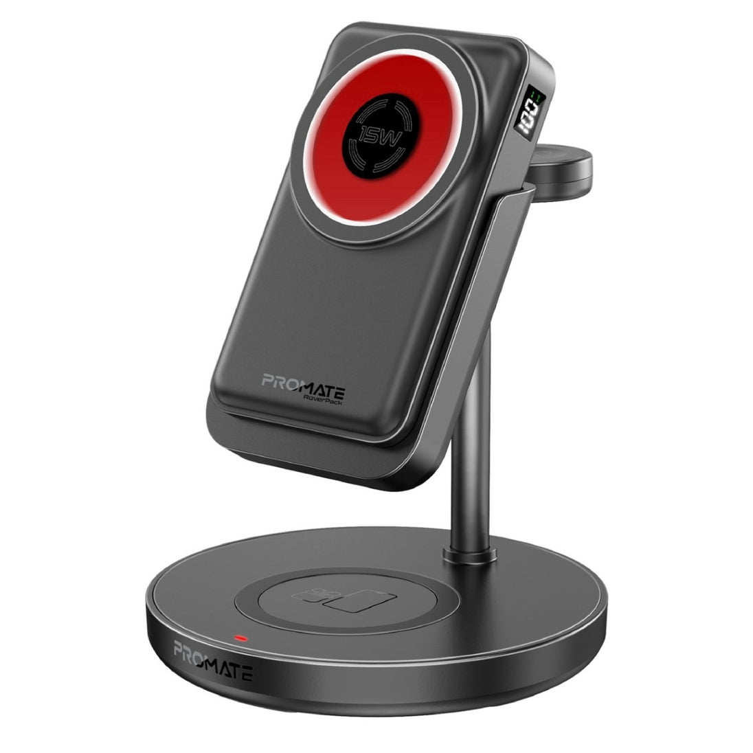 قاعدة شحن 4 في 1 مع بنك طاقة للشحن اللاسلكي متوافق مع MagSafe، وشاحن AirPods وشاحن Apple Watch قابل للفصل من Promate