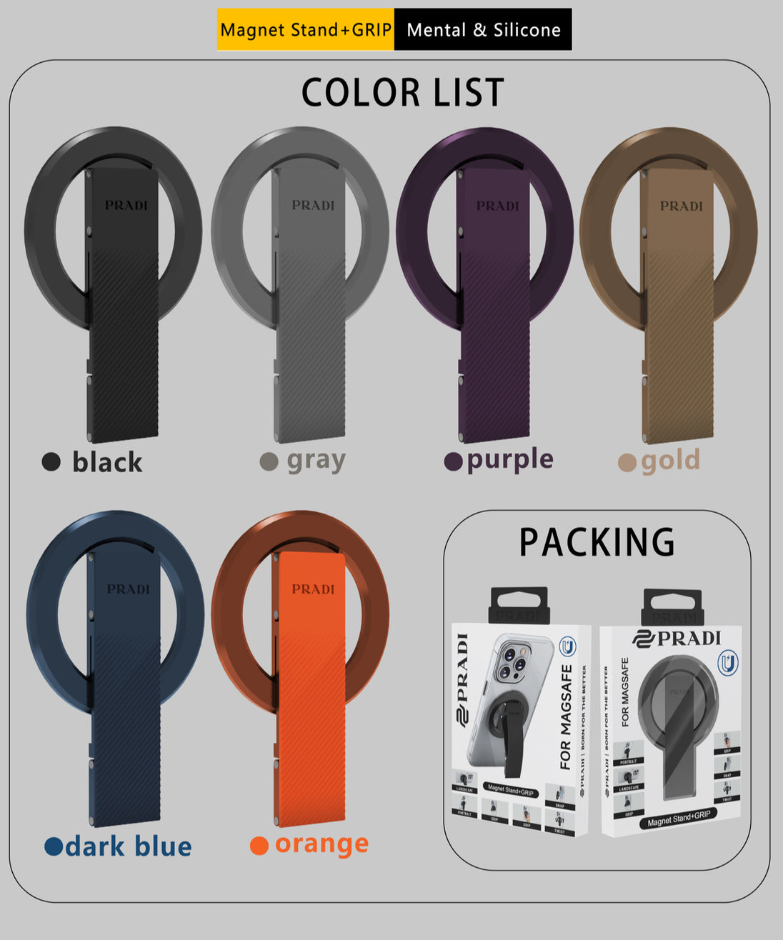 حامل مغناطيسي للهاتف من السيليكون وسبائك الألمنيوم – متانة وأناقة في قبضة يدك من pradl