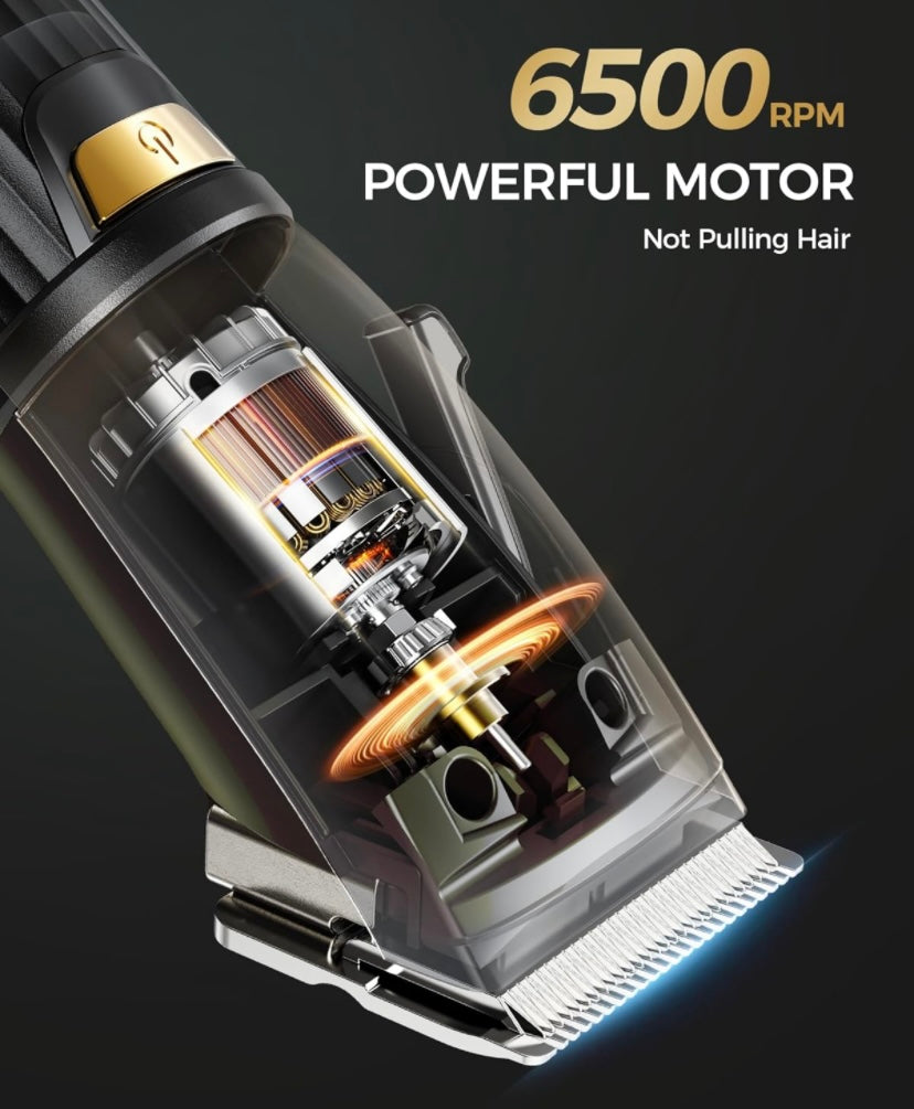 تتضمن مكينة الحلاقة الكهربائية من GLAKER محرك يضمن أكثر من 6500 دورة في الدقيقة، مما يوفر قوة استثنائية ومتانة. وتنزلق بسهولة عبر أكثر أنواع الشعر سمكًا دون التشابك أو السحب، وتوفر الشفرات الفولاذية المقاومة للصدأ حدة ذاتية لقص شعر فعّال.