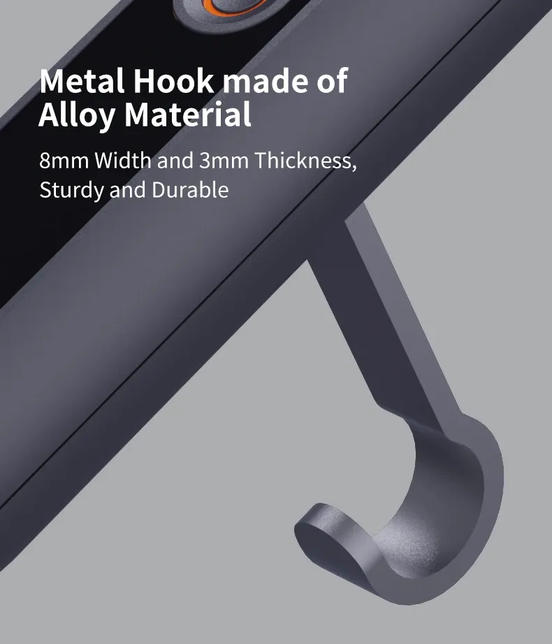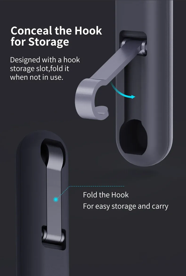 - إخفاء الخطاف عند التخزين. مصمم مع فتحة لتخزين الخطاف، يُطوى عند عدم الاستخدام.