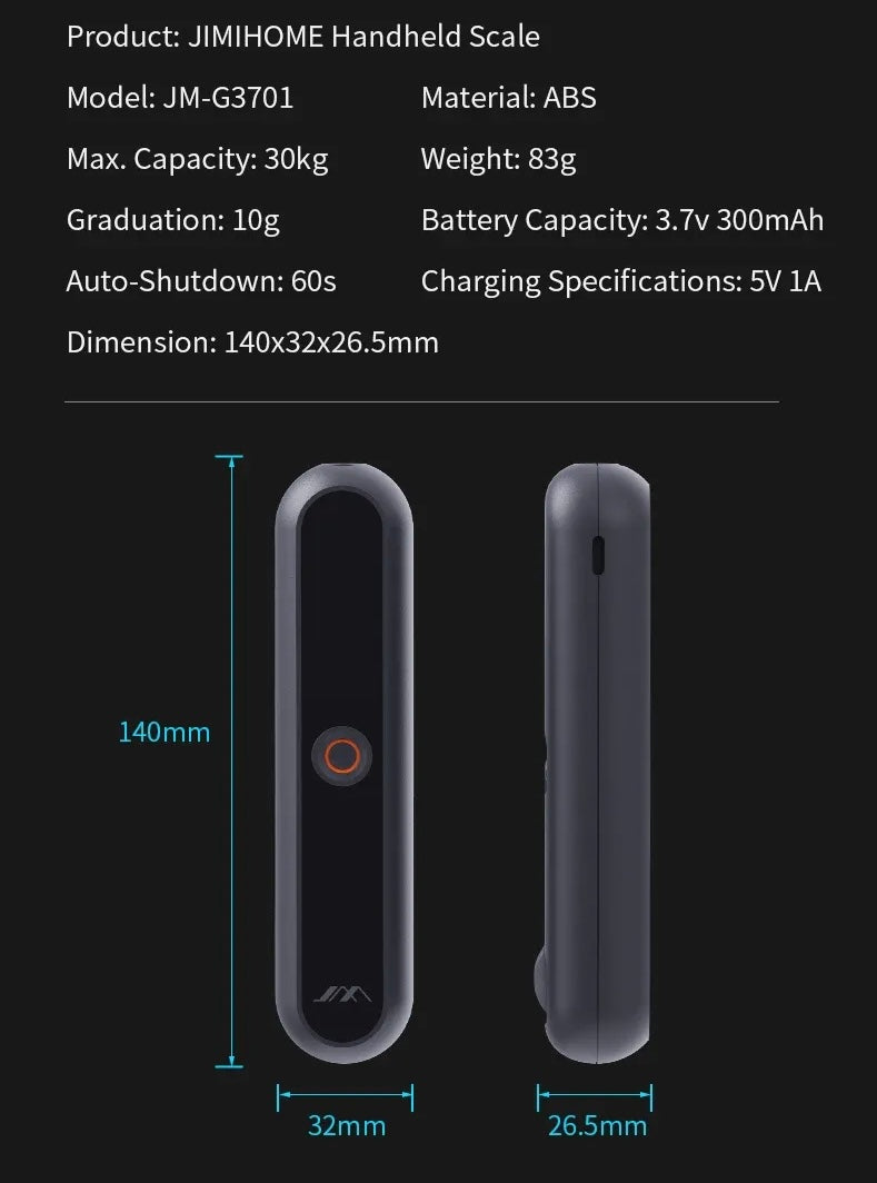 ميزان الأمتعة الرقمي المحمول القابل للشحن من شاومي JM-G3701 JIMIHOME، بسعة 30 كجم