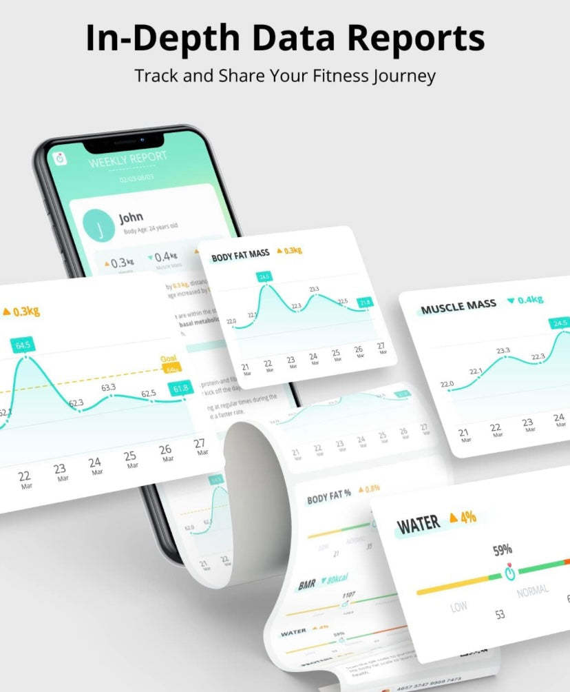 - **متابعة اللياقة البدنية:** إذا كنت تمارس اللياقة البدنية، يمكنك استخدام هذا الميزان لتتبع تغيرات كتلة العضلات ومؤشر كتلة الجسم.