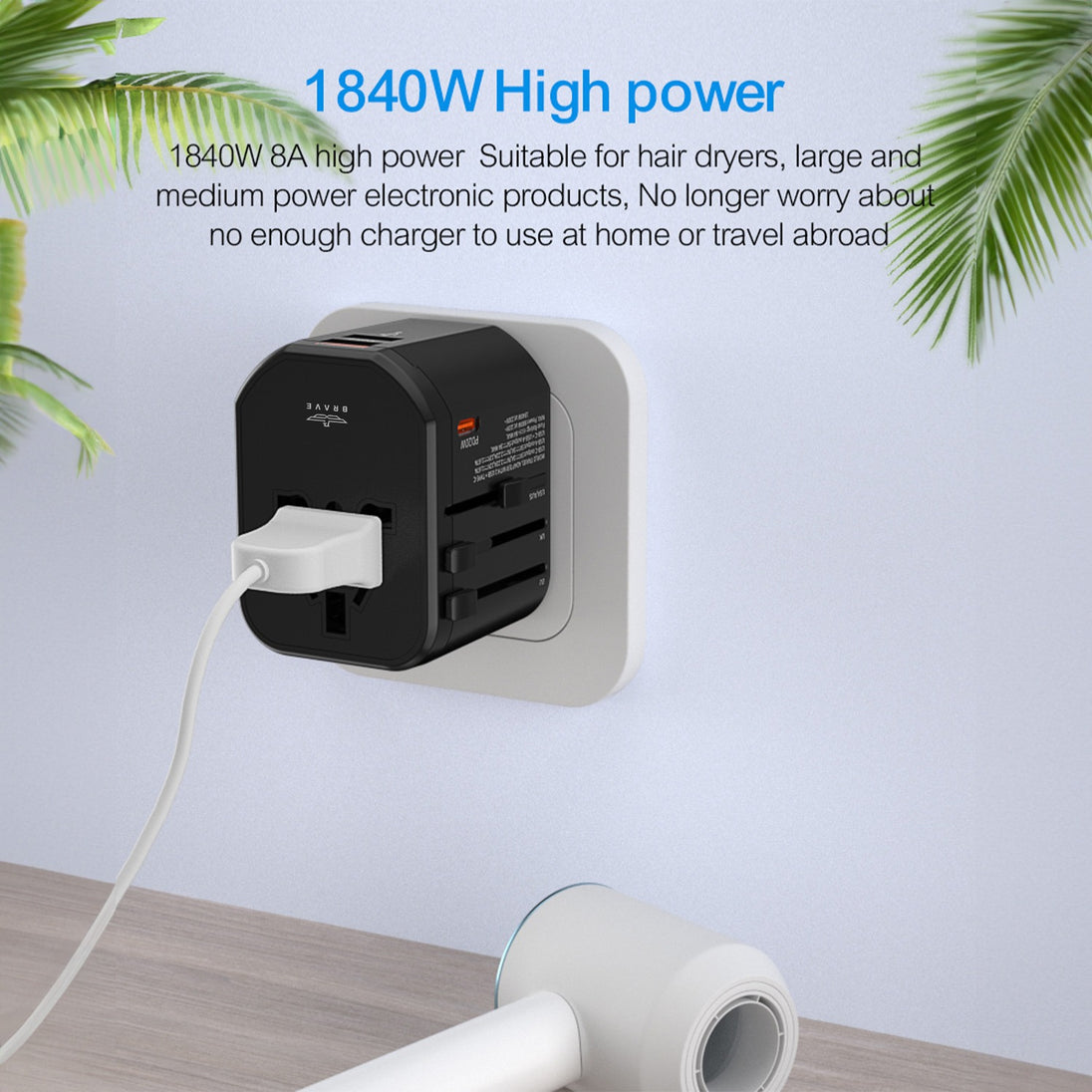 قم بالتنقل بسهولة وراحة مع محول السفر ذو 3 منافذ ومحول تيار متردد. يمكنك الآن شحن أجهزتك المحمولة والملحقات الأخرى بسرعة وفعالية أثناء التنقل.