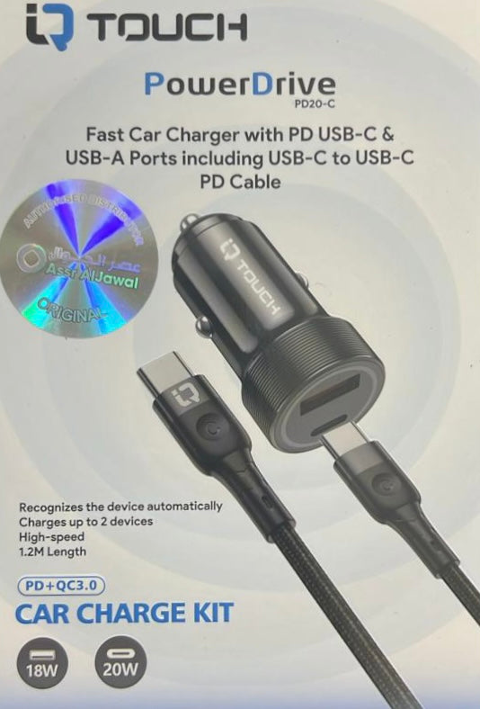 *IQ TOUCH PowerDrive PD30-C يوفر لك شحنًا سريعًا وفعالًا أثناء التنقل في سيارتك، مع تصميم مدمج ومتعدد المنافذ لتلبية احتياجات شحنك.*