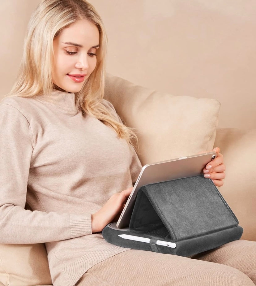 1. **دعم مريح:** تم تصميم وسادة الجهاز اللوحي هذه لتوفير دعم مريح لجهازك اللوحي أثناء الاستخدام، سواءً أكنت تشاهد فيديوهات، تتصفح الإنترنت، أو تقوم بأعمال أخرى.