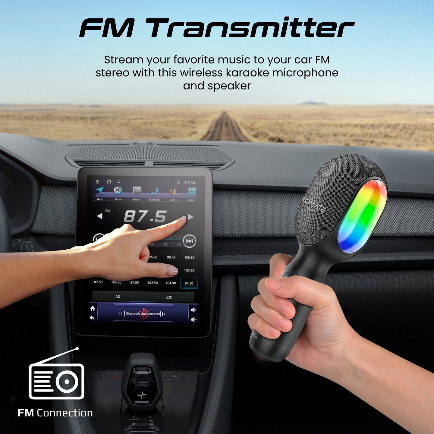 بروميت 5 في 1 ميكروفون كاريوكي لاسلكي ومكبر صوت مع أضواء RGB ديناميكية