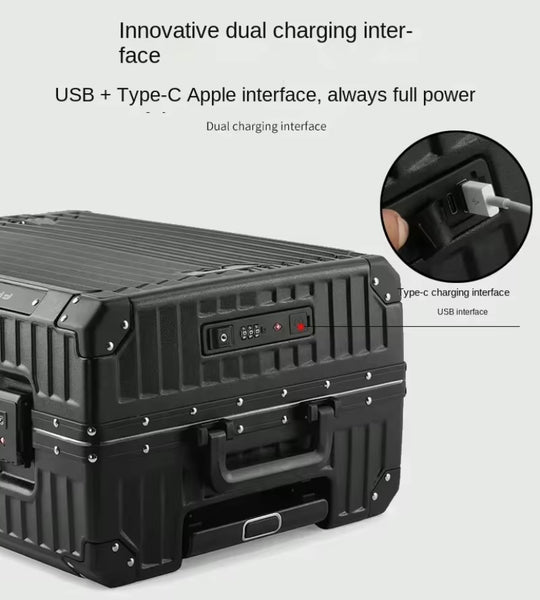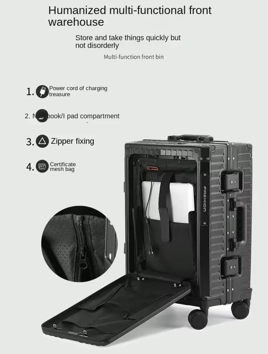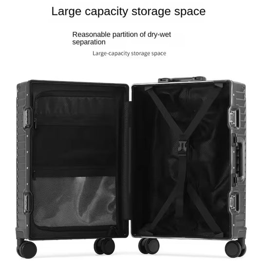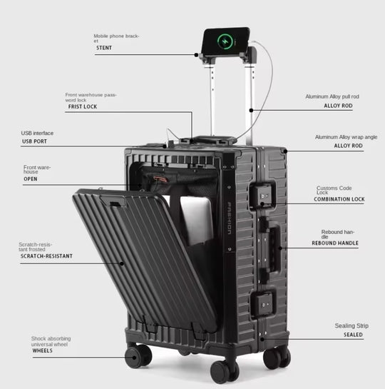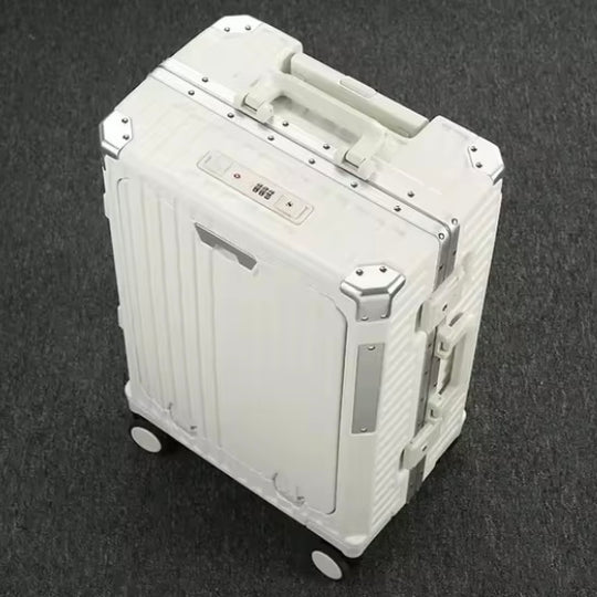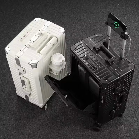 حقيبة سفر مميزة بإطار من الألومنيوم متعددة الأقسام مع حامل أكواب قابل للطي مقاس 20 بوصة