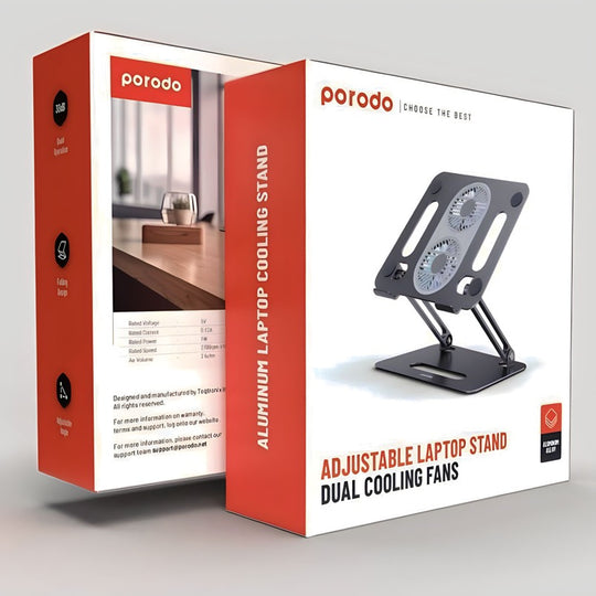 ستاند لحمل اللابتوب قابل للتعديل ومراوح تبريد مزدوجة من Porodo
