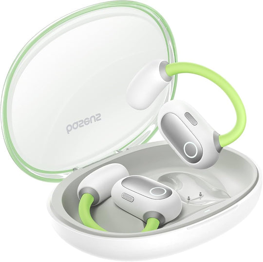 سماعة بتقنية التوصيل الهوائي – تصميم مفتوح الأذن، بلوتوث 5.4، بطارية 45 ساعة، مقاومة للماء IP54 – أبيض من Baseus