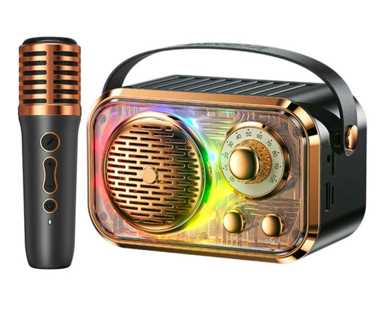 يتميز المنتج بتصميم كلاسيكي يشبه الراديو القديم مع إضاءة LED ملونة حول السماعة، تضفي لمسة جمالية عصرية 1.يدعم البلوتوث (BT)، USB، وتشغيل الملفات الصوتية باستخدام كابل AUX أو بطاقة ذاكرة (TF card). 2.سماعة قوية ومناسبة للاستخدام...Sale price AED 95.00Regular price AED 105.00 -