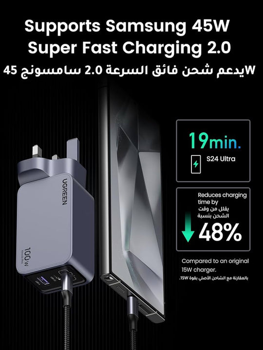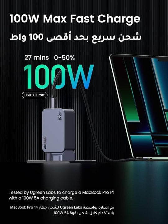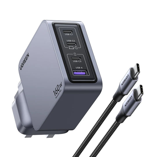 شاحن GaN فائق السرعة بـ 4 منافذ – قوة شحن جبارة في تصميم مدمج بقوة 160 واط من UGREEN
