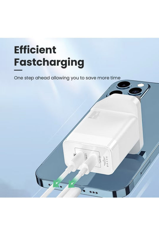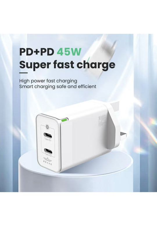 شاحن PD GaN بقوة 45 واط بمنفذين USB-C + كابل USB-C إلى Lightning من Brave