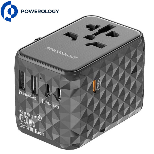 شاحن السفر بقوة 65 وات بخاصية الجان للشحن السريع من Powerology