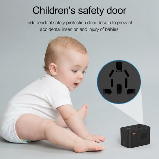 شاحن السفر الدولي GaN2 بقدرة 25 واط شحن سريع مع منافذ USB-A وUSB-C وتوافق عالمي للمقابس من Brave