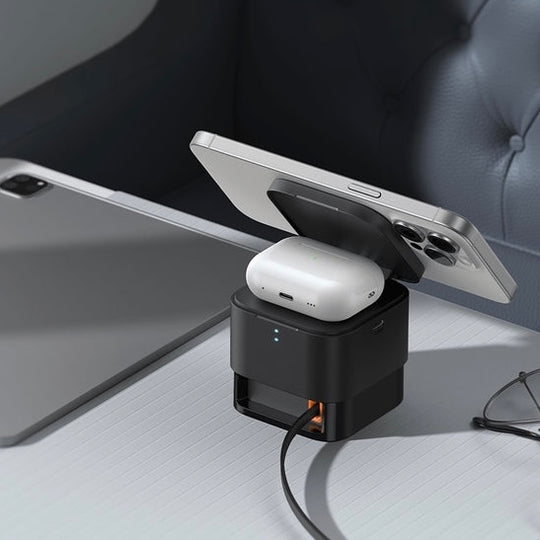 شاحن اللاسلكي للهواتف والسماعات في نفس الوقت مع كابل قابل للسحب من Baseus
